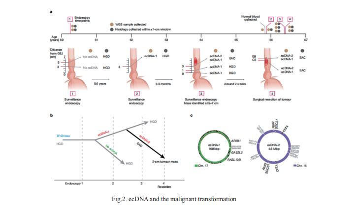 2. Extrachromosomal DNA in the cancerous transformation of Barrett’s oesophagus